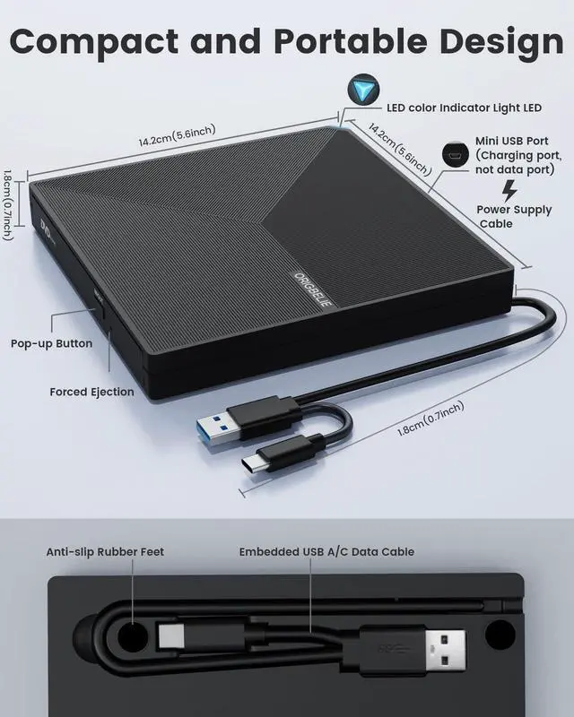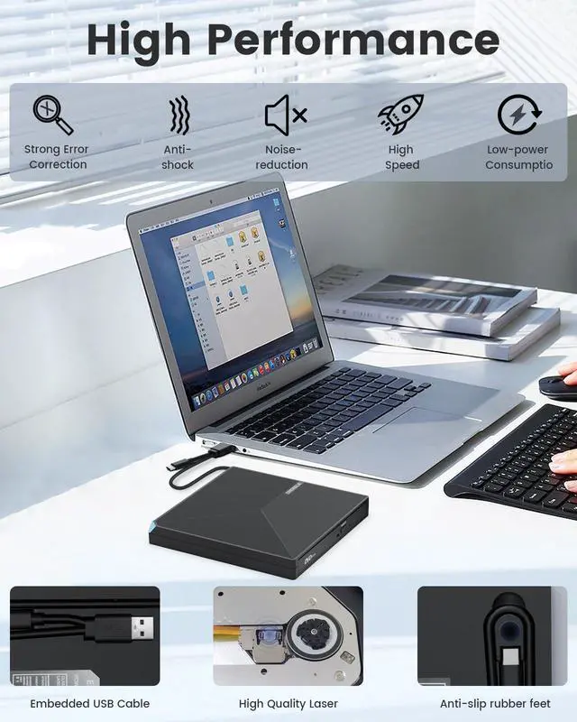 Fortunately, We have already done all the work for you. This multi-function 2 in 1 USB A/USB C data cable external USB 3.0 disc drive that we launched is not only a CD/DVD reader, but also it has the function of CD/DVD burner. This will allow you to have more budget to buy the latest laptops that are comfortable, smooth, and have powerful processors and graphics cards.