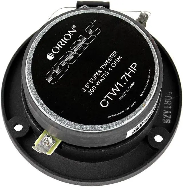 High-Power Performance With 75 watts RMS and 300 watts MAX power handling, these tweeters maintain their sonic excellence even at elevated volume levels. Advanced Engineering The CTW 1.7HP 's advanced engineering ensures uncompromising audio quality, making it a top choice for discerning audio enthusiasts. Lasting Excellence The CTW 1.7HP is built for lasting performance, delivering consistent and reliable high-frequency sound for a superior auditory experience. Elevate Your Drive Transform your driving experience with high-frequency sound that redefines clarity and depth. Install the ORION CTW 1.7HP 3.8 Bullet Tweeter and immerse yourself in unparalleled audio brilliance and dimension.