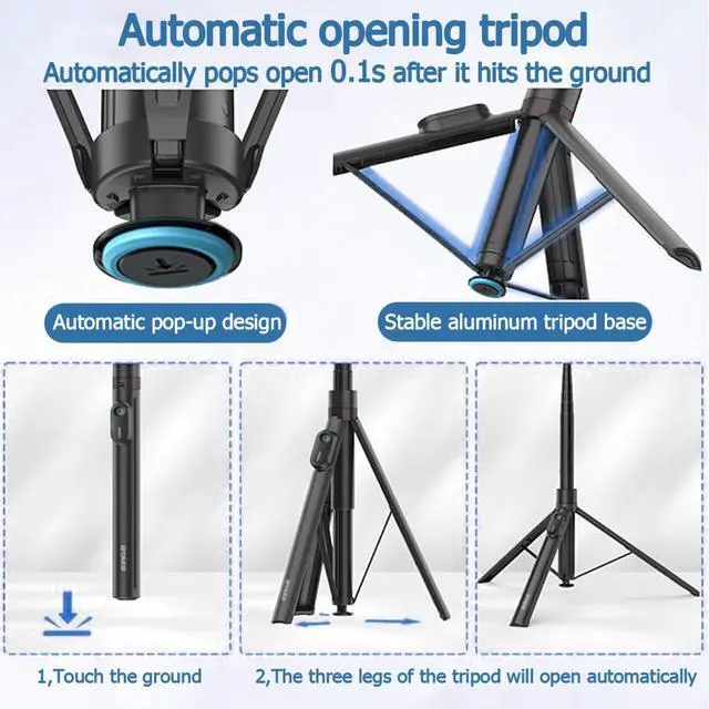 | Special Feature | Auto-Open Tripod, Extendable, Magnetic Remote, Rotatable Head, Wireless Charging |