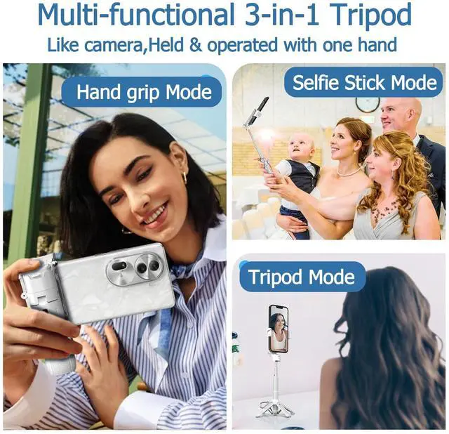 Transform your mobile photography and content creation with this innovative 3-in-1 portable tripod from ormos. Incredibly compact at just 4.7 inches when folded, this pocket-sized wonder is smaller than your smartphone yet expands to 17 inches when needed. The versatile design seamlessly converts between three essential functions: a comfortable hand grip for stable shooting, an extendable selfie stick for group photos, and a freestanding tripod for hands-free recording. The advanced phone holder rotates 360° with 225° panning capability, allowing for perfect framing from any angle. Two cold shoe mounts provide attachment points for accessories like microphones or lights, enhancing your mobile studio setup. The included Bluetooth 5.2 remote offers convenient wireless control from up to 33 feet away, making solo content creation effortless. Whether you're vlogging, live streaming, or capturing travel memories, this lightweight, portable tripod delivers professional-quality stability wherever your creativity takes you.