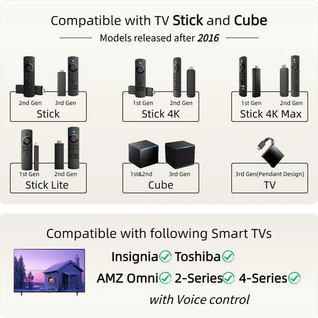 for TV Stick HD ( 2nd Gen, 3rd Gen) for TV Stick 4K (1st Gen, 2nd Gen) for TV Stick 4K Max (1st Gen, 2nd Gen) for TV Stick Lite ( 1st Gen, 2nd Gen) for TV Cube (1st Gen, 2nd Gen, 3rd Gen) for Smart TV (3rd Gen Pendant Design) for Toshiba Smart TVs for Insignia Smart TVs: NS-32DF310NA21, NS32DF310NA21, NS-55DF710NA21, NS55DF710NA21, NS-65DF710NA21, NS65DF710NA21, NS-70DF710NA21, NS70DF710NA21, NS-75F301NA22, NS75F301NA22, NS-24F202NA22, NS-32F201NA22, NS-32F202NA22, NS-42F201NA22, NS-43DF710NA21, NS-43F301NA22, NS-50DF710NA21, NS-50F301NA22, NS-50F501NA22, NS-55F301NA22, NS-55F501NA22, NS-58F301NA22, NS-65F501NA22, NS-70F501NA22, NS24F202NA22, NS32F201NA22, NS32F202NA22, NS42F201NA22, NS43DF710NA21, NS43F301NA22, NS50DF710NA21, NS50F301NA22, NS50F501NA22, NS55F301NA22, NS-24DF310NA21, NS-24DF311SE21, NS-39DF310NA21, NS-43DF710NA19, NS-55DF710NA19, NS-505DF710NA19, NS24DF310NA21, NS24DF311SE21, NS39DF310NA21, NS43DF710NA19, NS55DF710NA19, NS505DF710NA19, NS-24DF310NA19, NS-32DF310NA19, NS-39DF510NA19, NS-50DF710NA19, NS-50DF711SE21, NS-58DF620NA20, NS24DF310NA19, NS32DF310NA19, NS39DF510NA19, NS40DF710NA19, NS50DF710NA19, NS50DF711SE21, NS58DF620NA20, NS-43DF710NA19, NS43DF710NA19, NS-55DF710NA19, NS55DF710NA19, NS-505DF710NA19, NS505DF710NA19, NS-50DF711SE21, NS-32DF310NA19, NS-58DF620NA20, NS40DF710NA19.