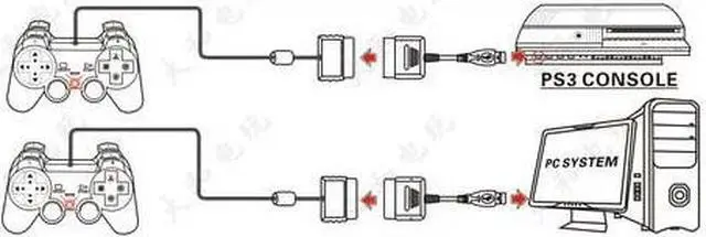 •Simply connect PS2 controller to the adapter, then plug the other end of the adapter to PS3's USB port.