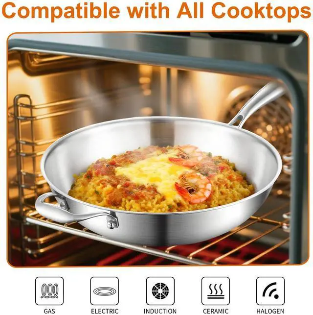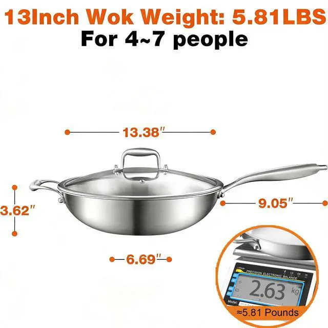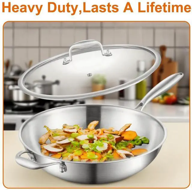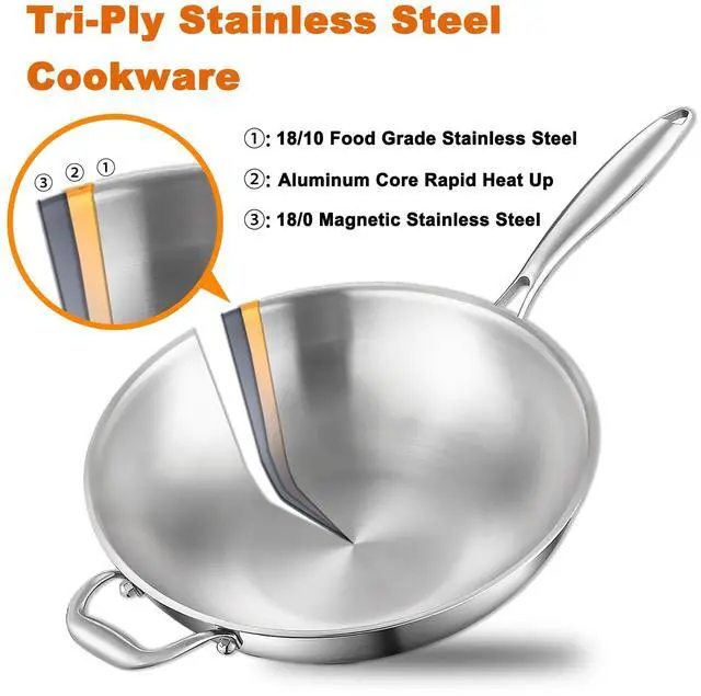 Whole body Tri-Ply Stainless Steel 13 inch wok Pan