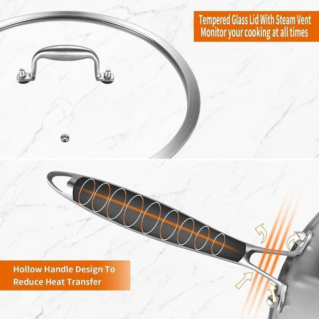 | Material | 3-Ply Construction: 18/10 Food-Grade Stainless Steel Interior, Aluminium Core, 18/0 Food-Grade Stainless Steel Exterior |