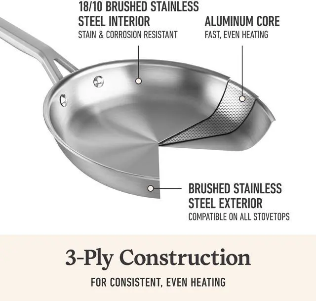 Elevate your kitchen with Calphalon Stainless Steel, crafted for precision cooking and long-lasting durability. Engineered with non-toxic, 3-layer construction and a heat-responsive aluminum core, our stainless steel features Calphalon Turbo Temp technology for faster heating. Whether you're whipping up delicate sauces or creating the perfect sear, this cookware delivers flawless results every time.