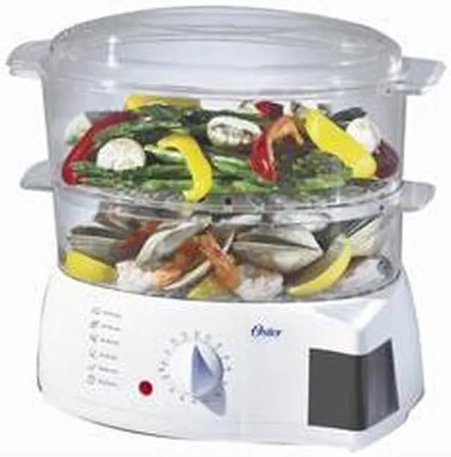 Dual-tiered Steaming CapabilityA large 3.8 qt. steaming bowl and a smaller 2.3 qt. steaming bowl with 8 egg holders for soft and hard cooked eggs as well as a 10-cup capacity rice bowl are included for cooking versatility. Cook and steam anything you like with the double-tiered Oster 5711 mechanical food steamer!