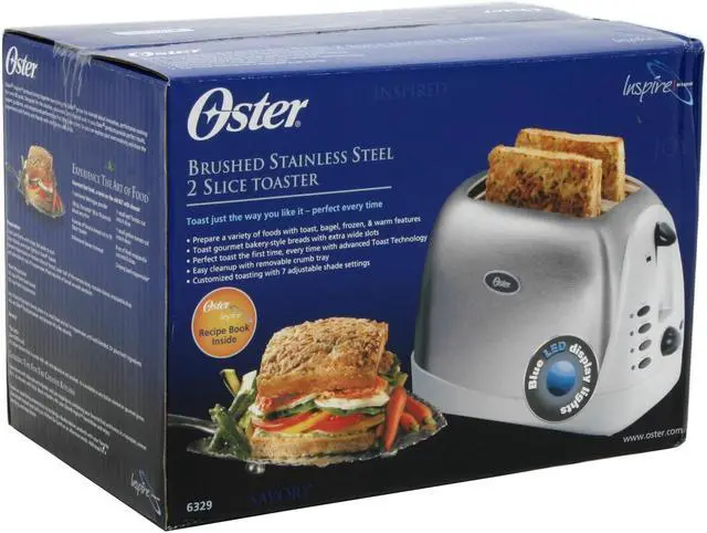 | Features | 2 slice toaster Blue LED display lights Electronic Toast Technology From sliced bread to hamburger buns, extra wide slots allow for a wide range of bread types and sizes Durable brushed stainless steel exterior for functionality and style Removable non-stick crumb tray for easy cleaning Even toasting with our dual auto self-centering bread guides Toast outside the loaf with bagel, frozen, and warm options Don't want toast Just press the cancel button Remove toast easily with our high-rise toast lift Toast just the way you like it with our seven (7) toast shade settings |