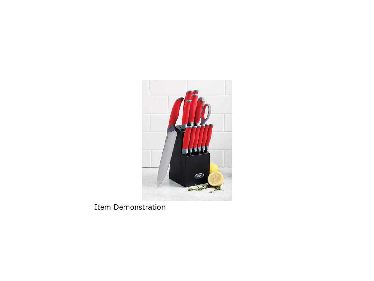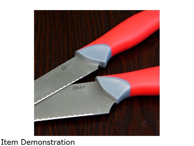 Oster 81006.14 Lindbergh 14 Piece Stainless Steel Cutlery Black Block Set, Red Handles