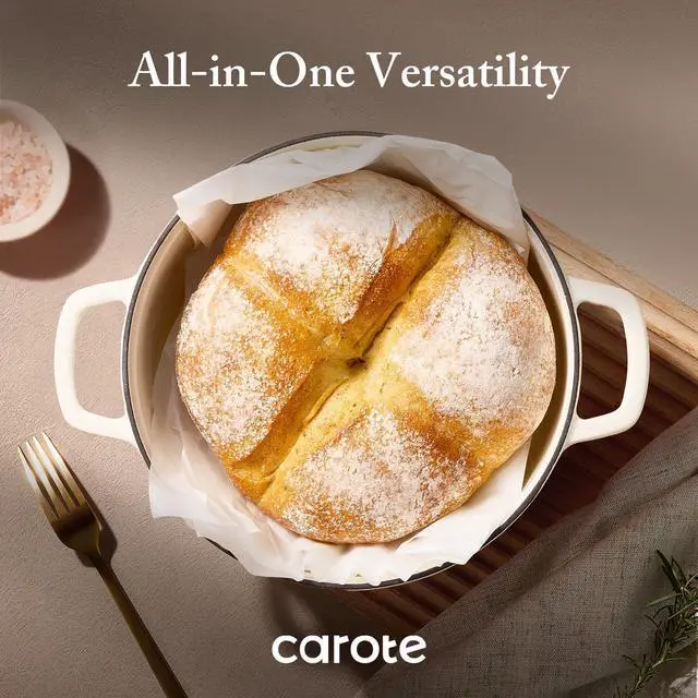 CAROTE 7QT Enameled Cast Iron Dutch Oven Pot with Lid, Heavy-Duty Dutch Ovens for Sourdough Bread Baking, Braising, Stews, Roasting, Healthy & Non-Toxic, Dual Handles, All Stovetop Compatible, Oven Safe up to 500° F, Cream White