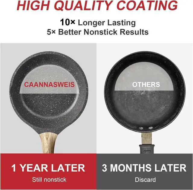The unique three-layer nonstick layer coating gives these pans excellent performance for long-lasting nonstick.