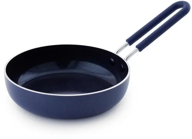 Mini Egg Frying Pan Skillet, Diamond Infused Healthy Ceramic Nonstick, PFAS and PFOA-Free, Dishwasher and Oven Safe, Even Heating, Metal Utensil Safe, Warp Control Base, Blue