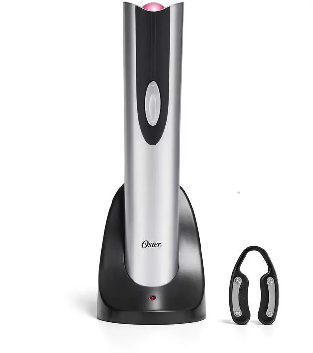 Ideal for holidays and entertaining, the Oster Cordless Rechargeable Wine Opener makes it easy to start parties large and small in sophisticated style. Designed to fit all traditional wine bottles, this cordless, ergonomically designed opener delivers portable convenience and effortless performance. It works with both natural and synthetic corks. The included foil cutter removes seals in no time, and opens bottles in seconds. It's a great gift for the wine lovers on your list.