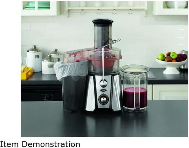 1000 watts of juicing power Easy clean Rinse'n Ready filter 5 speed settings to easily juice a variety of fruit and vegetables Extra-wide feed chute fits whole fruits and vegetables Extra-large capacity pulp collector Includes 32 oz. juice pitcher with froth separator
