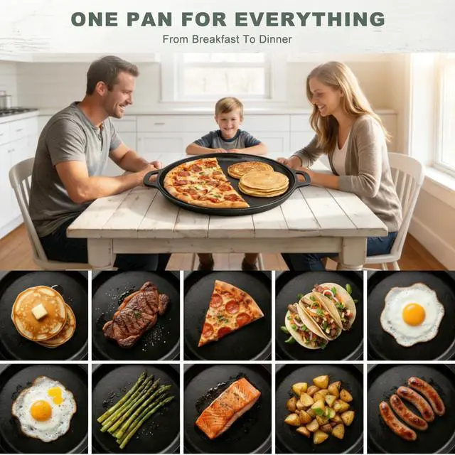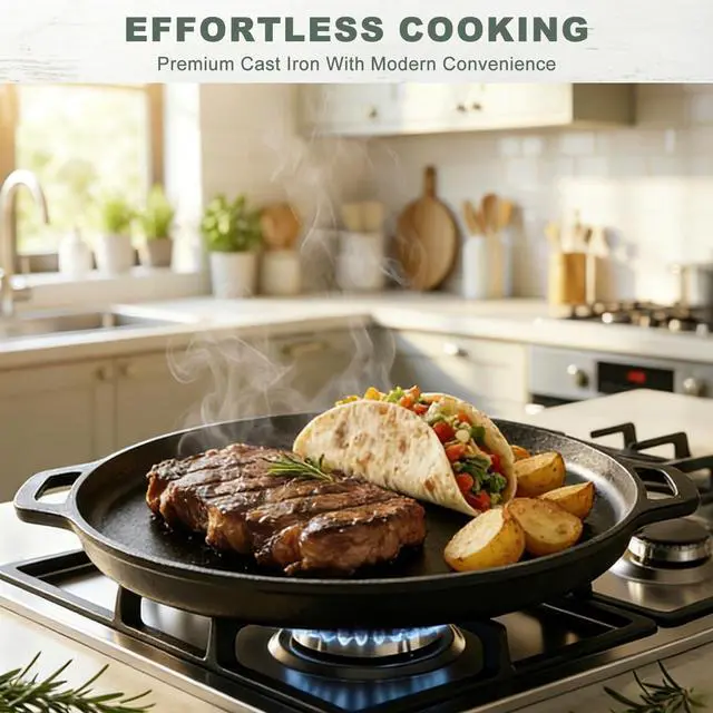DURABLE ONE-PIECE CAST IRON FOR LASTING PERFORMANCE Crafted from premium, seamless one-piece cast iron, this tortilla pan for stove top heavy-duty skillet is built for exceptional durability and even heat distribution. The tortilla pan robust construction resists warping and cracking, ensuring reliable, long-lasting performance for generations of delicious meals