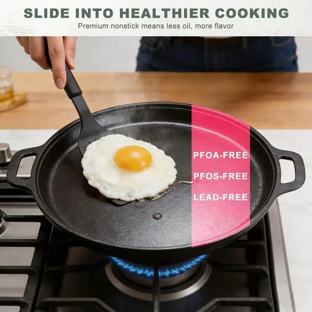 EFFORTLESS NONSTICK COOKING & DISHWASHER SAFE Experience superior cooking with the comals para tortillas advanced nonstick coated cast iron griddle. Say goodbye to stubborn food residue! Enjoy perfectly cooked pancakes, tortillas, and seared meats that release with ease, then simply toss the tortilla comal in the dishwasher for hassle-free cleanup