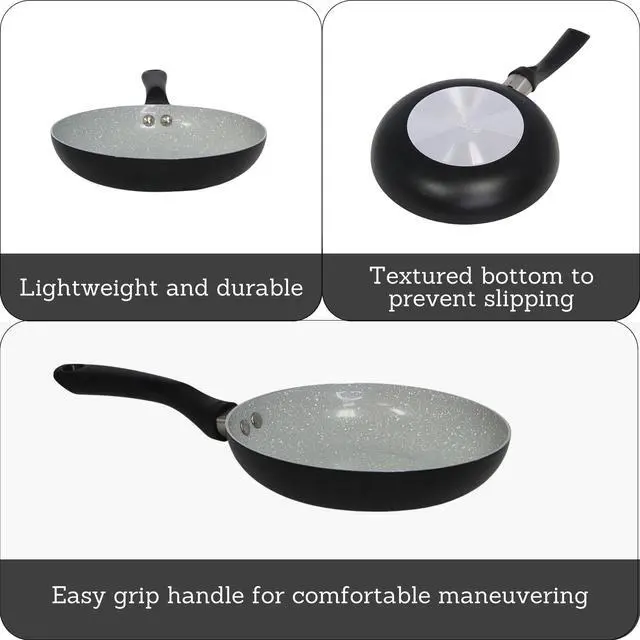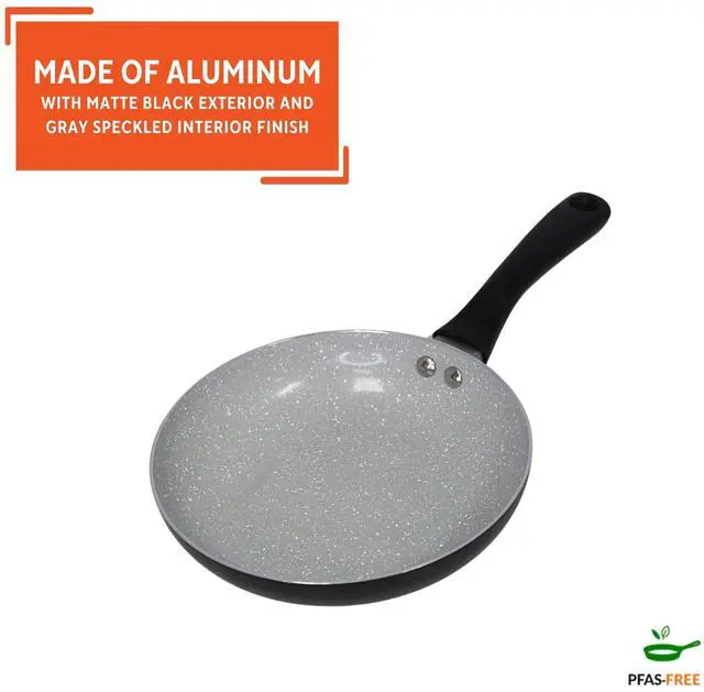 PHYSICAL QUALITIES: Crafted from lightweight aluminum, this pan features a striking gray speckled ceramic coating with a sleek matte black exterior, giving it a modern aesthetic that enhances any kitchen decor