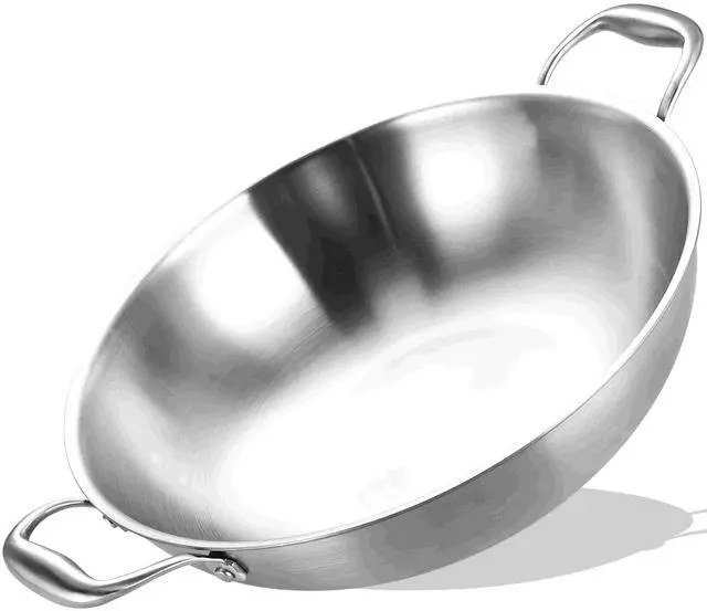 14.5 Inch Tri-Ply Stainless Steel Chef's Wok Pan,Deep Frying Pan,Jumbo Cooker,Induction Cooking Pan,Dishwasher and Oven Safe.
