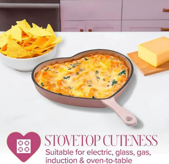 OVEN SAFE TO 500°F: Go seamlessly from stovetop to oven with confidencethis enameled cast iron heart pan is oven safe up to 500°F, making it perfect for baked dips, brownies, cobblers, or skillet pasta bakes.
