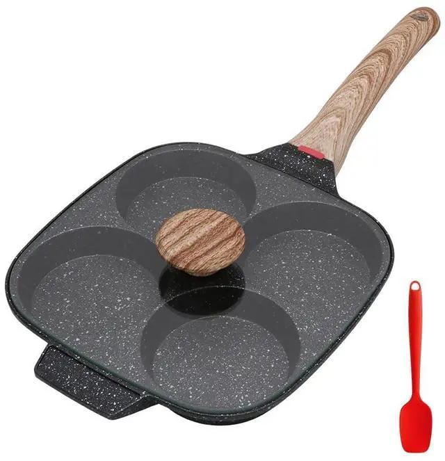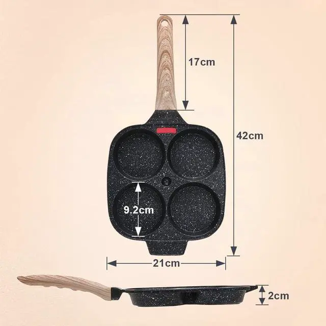 The fried egg pan uses a four-hole design, which is perfect for cooking omelets, bacon, burgers, pancakes, etc. It can make cooking faster and easier because you can cook several kinds of food simultaneously, which saves your time and energy for breakfast.