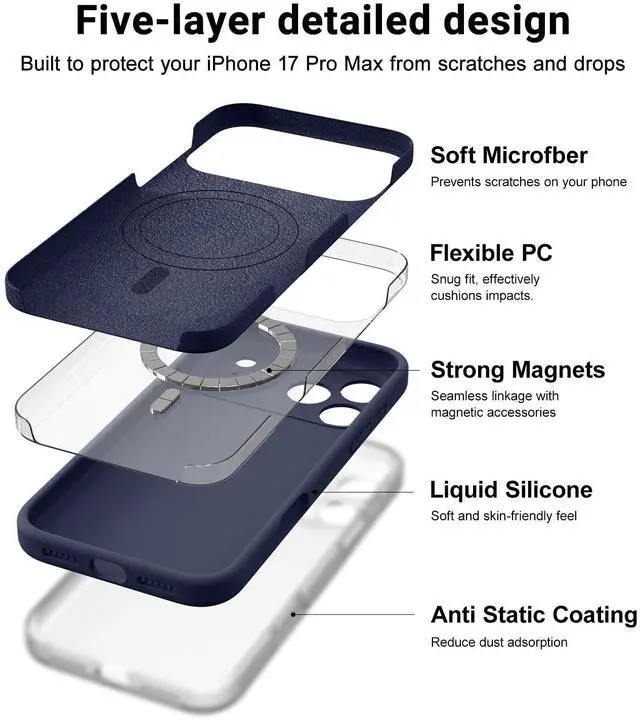Thanks to the flexibility and elasticity of the liquid silicone iPhone 17 pro max case, it can effectively absorb the impact force when the phone is dropped, and provide excellent protection for your phone.