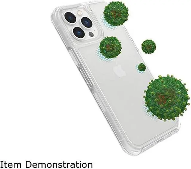 DROP+ | 3X as many drops as military standard (MIL-STD-810G 516.6) Lasting antimicrobial technology helps protect case exterior against many common bacteria* Case is infused with silver-based additive that continually blocks microbial growth Compatible with Apple MagSafe charger and wireless charging Made with 50% recycled plastic Clear case shows off your device Thin profile slips easily into tight pockets Durable protection defends against drops, bumps and fumbles Raised edges protect camera and touchscreen One-piece design pops on and off in a flash Pair with an OtterBox screen protector for total, 360-degree phone protection DISCLAIMER: Image 4 is a simulated representation of microbial reduction over a 24 hour period under lab conditions.