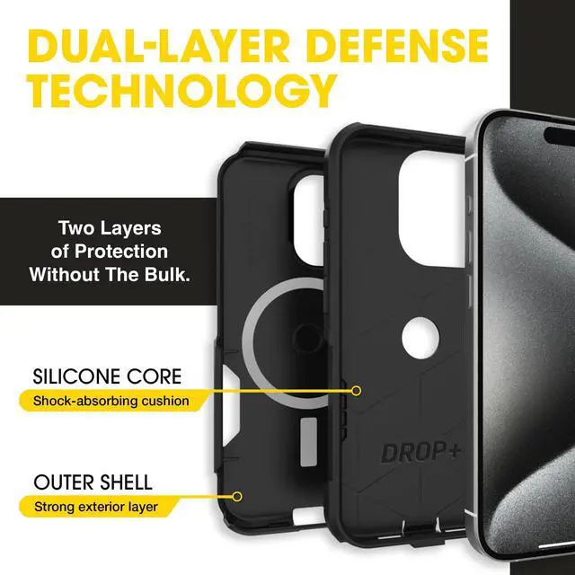 iPhone 15 Pro - Commuter MagSafe Case - Slim & Tough - Pocket-Friendly - Dual Layer Drop Protection - Port Covers Non-Retail Packaging - Black