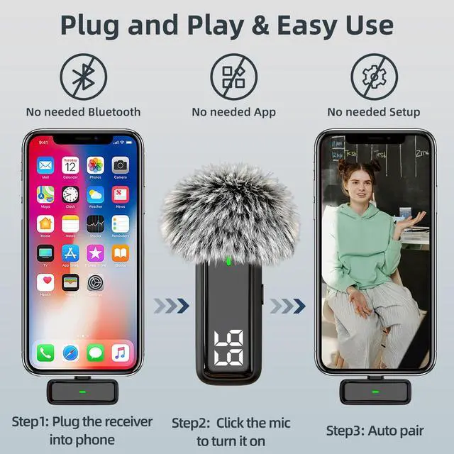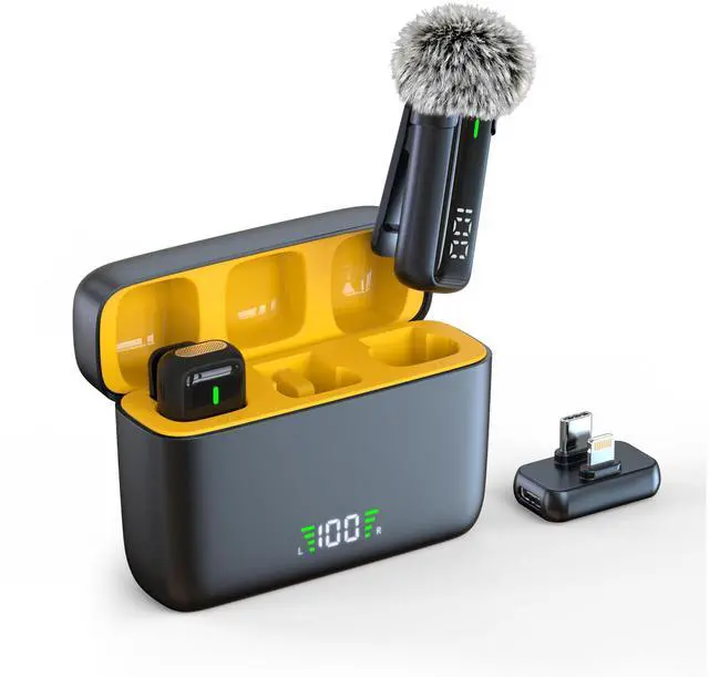Upgrade Your Audio: The Ouwealy Pro Wireless Lavalier Microphone System (2 Mics + Charging Case) Tired of muffled audio, distracting background noise, or complicated microphone setups? The Ouwealy 2-Pack Wireless Lavalier Microphone system delivers professional-grade sound for content creators, streamers, interviewers, and anyone who demands crystal-clear audio. Plug, Clip, Record It's That Simple! Forget frustrating Bluetooth pairing or downloading apps. The Ouwealy system is true plug-and-play. Just insert the compact receiver (Lightning or USB-C) into your iPhone, iPad, or Android phone, clip the tiny, lightweight microphones onto your clothes (or hold them), and you're ready to record high-quality audio instantly. Its ultra-portable design fits easily in your pocket or bag. Professional Sound Quality Made Easy Ouwealy mics utilize sophisticated DPS noise reduction technology to effectively minimize unwanted background chatter, traffic noise, and ambient disturbances. The professional-grade windscreen dramatically reduces wind noise and eliminates plosive sounds (like harsh "pops"), ensuring your voice comes through crisp, clear, and natural. The omnidirectional capsule captures your voice accurately from all directions. Power That Lasts Your Longest Sessions Each Ouwealy wireless microphone provides 6 hours of continuous recording on a single charge. The sleek charging case holds an additional 3 full charges, giving you a massive total of 24 hours of recording time. Never miss a moment smart LED displays on the mics and the case clearly show the exact remaining battery level. Record Together, Record Anywhere Perfect for interviews, co-hosted podcasts, or dual-presenter videos, this system captures two voices simultaneously with exceptional clarity. Need to move? Enjoy remarkable freedom with a reliable wireless range of up to 70 feet and ultra-low latency audio transmission, ensuring your sound stays perfectly in sync with your video, even at a distance. Universal Compatibility & Pro Versatility Equipped with both Lightning and USB-C connectors, the Ouwealy lavalier mic system works seamlessly with virtually all modern smartphones (iPhone, Android). With simple adapters (not included), you can easily connect to tablets, laptops, or PCs. Whether you're live streaming on Twitch, creating YouTube videos, recording podcasts, conducting interviews, teaching online, or making TikTok content, Ouwealy delivers unmatched convenience and broadcast-quality sound. Get the Ouwealy Advantage Today! Experience the difference professional audio makes. Order your Ouwealy Wireless Lavalier Microphone 2-Pack with Charging Case now and start capturing stunningly clear, noise-free sound for all your content creation needs!