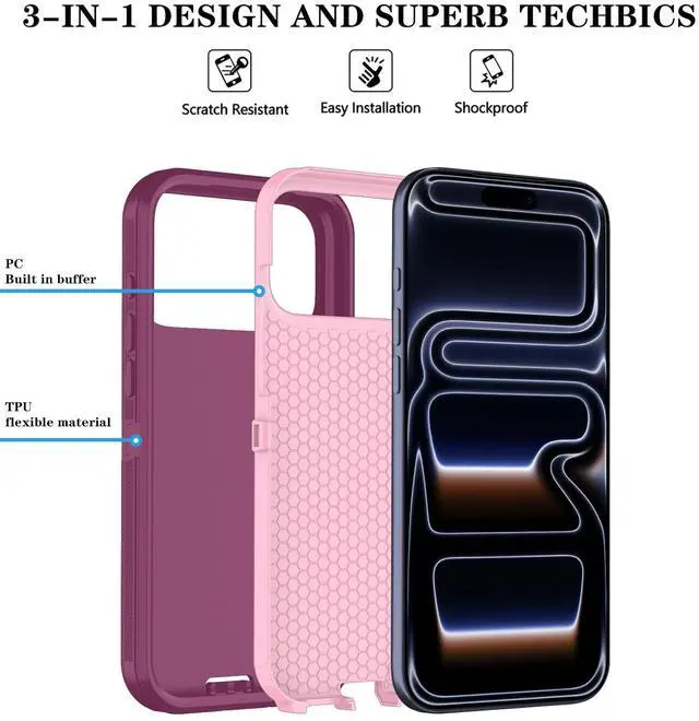 ![Alt view image 3 of 6 - Compitable with iPhone 17 Pro Max Case with HD Screen Protector, [2 in 1 ] Heavy Duty Protection Phone Case for iPhone 17 Pro Max 6.9" (WineRedPink)](https://c1.neweggimages.com/productimage/nb640/C6FJD2604270B0TBSB0.jpg)