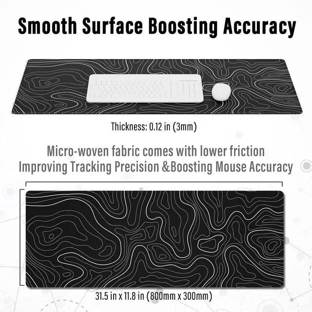 This large mousepad gaming is made of soft and dense rubber with non-slip texture on the back side; together, the texture and thickness keep the mouse pad always firmly in place.