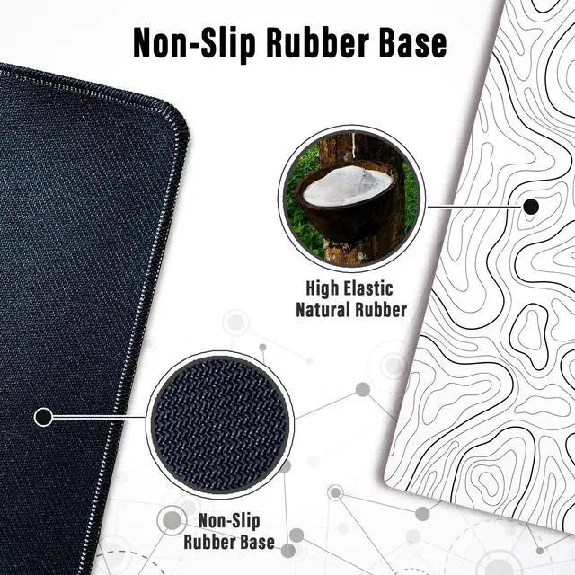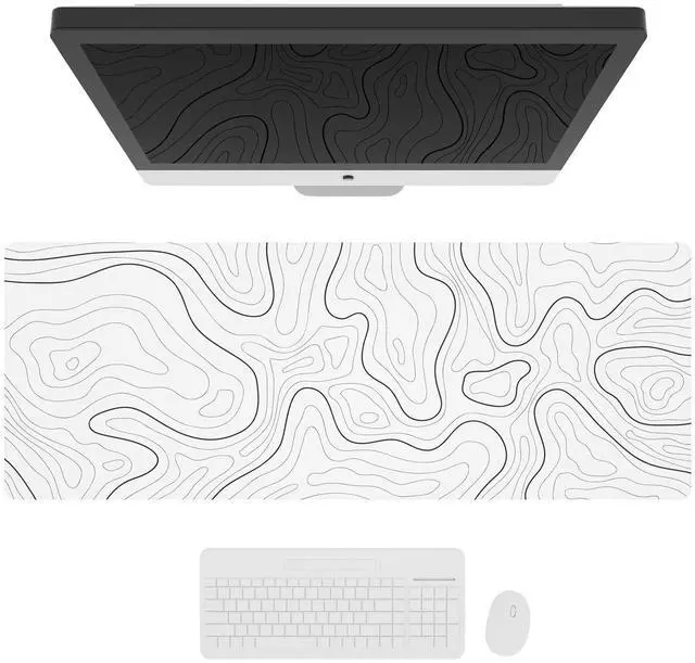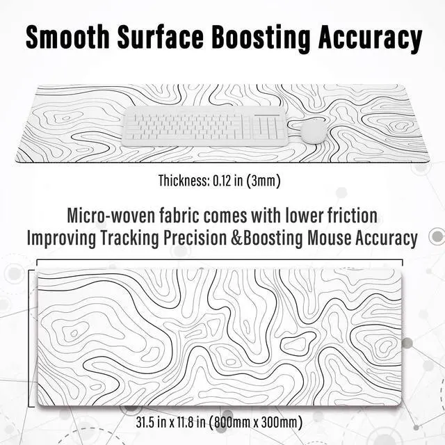 KEHIPI Large Gaming Mouse Pad with Stitched Edges, Minimalist Topographic Map Desk Mat, Extended XL Mousepad with Anti-Slip Base, Cool Desk Pad for Keyboard and Mouse, 31.5 x 11.8 in, White