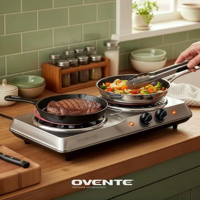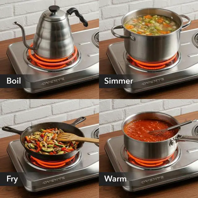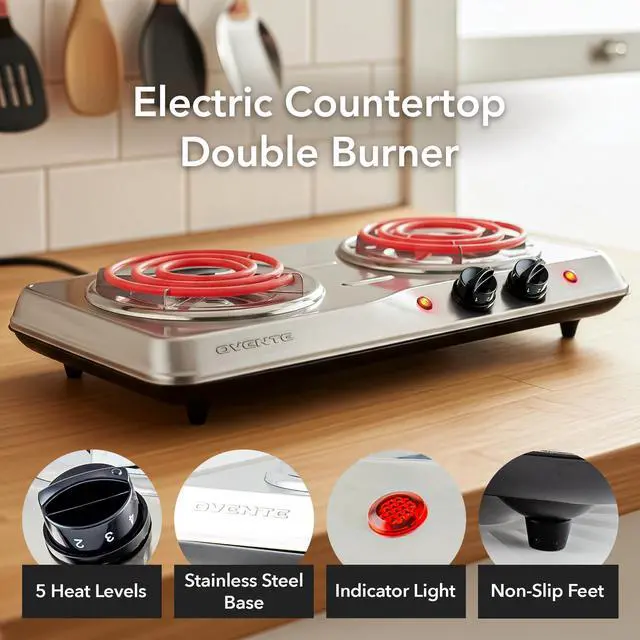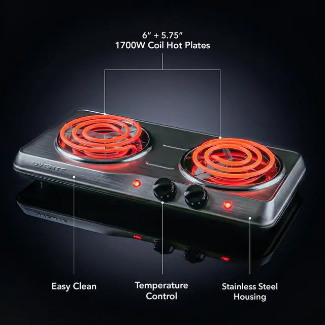 Cook multiple dishes at the same time with two high-efficiency coil burners designed for fast and even heat distribution. The dual-burner layout provides flexibility for boiling, frying, simmering, or warming food simultaneously, perfect for busy kitchens, small apartments, dorms, RVs, and camping setups.