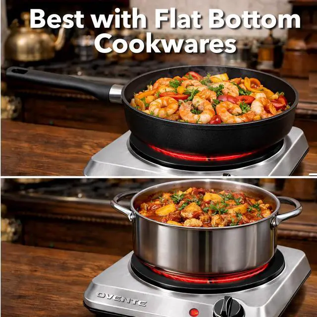 Designed to work with flat-bottom stainless steel, aluminum, and nonstick cookware. Ideal for everyday pots and pans, making it a versatile addition to any kitchen setup.