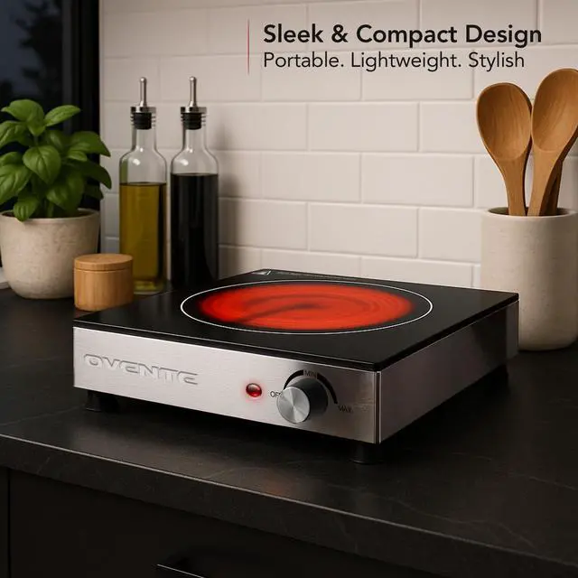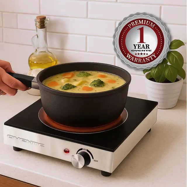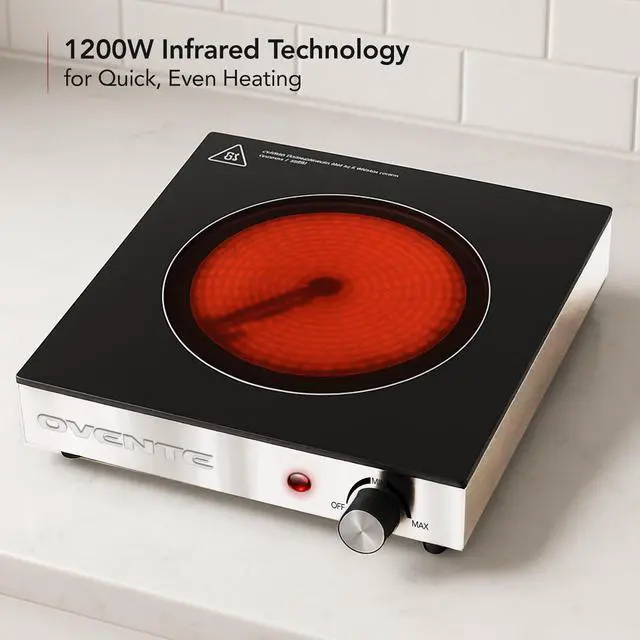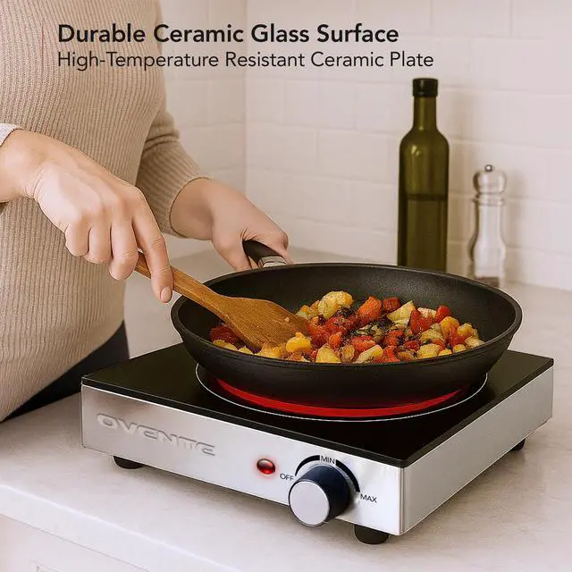 This electric stovetop burner works with a wide range of materials, including stainless steel, ceramic, glass and other high-temperature-resistant pots.