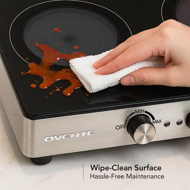 This electric stovetop burner works with a wide range of materials, including stainless steel, ceramic, glass and other high-temperature-resistant pots.