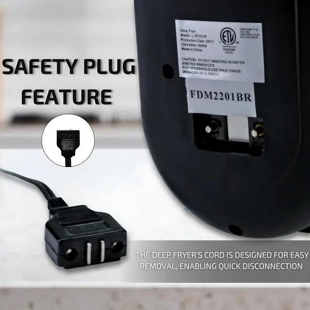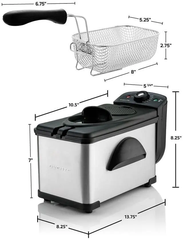 Its powerful 1500W heating element rapidly fires up the deep fryer’s full capacity of 2L (68 oz) in just a few minutes.