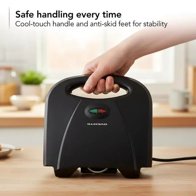 Cool-touch handle, anti-skid feet, and built-in thermostat control prevent overheating.