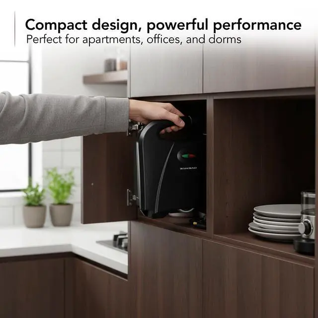 Space-saving design ideal for small kitchens, dorm rooms, offices, or apartments.