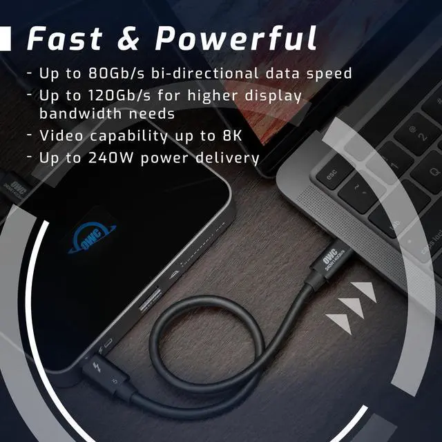 1 M (39.4"), OWC Thunderbolt 5 (USB-C) Cable, 240W 48V/5A, 3 Year OWC Limited Warranty