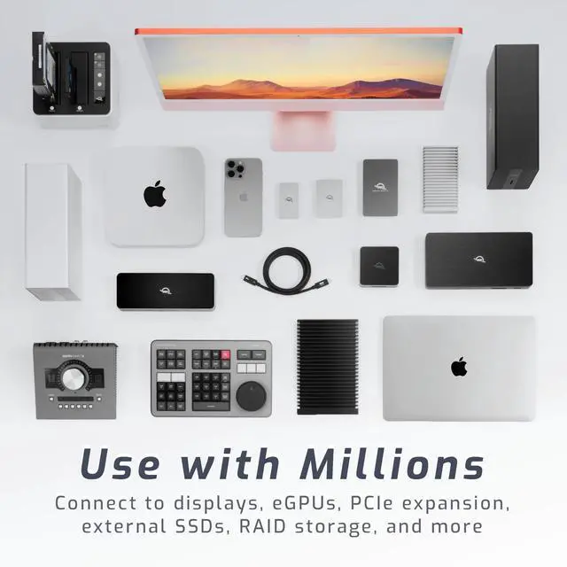 Versatile Connections: connect to millions of docks, displays, eGPUs, PCIe expansion, external SSDs, RAID storage, and accessories