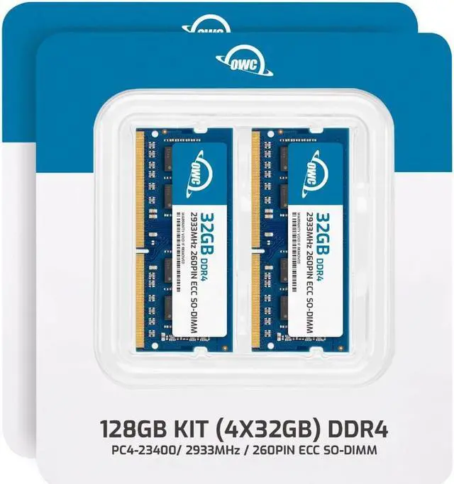 • OWC 128GB UPGRADE: Consists of 4pcs of 32GB DDR4 2933MHz PC4-23400 CL21 2RX8 ECC SO-DIMM 1.2V 260-pin Memory Modules