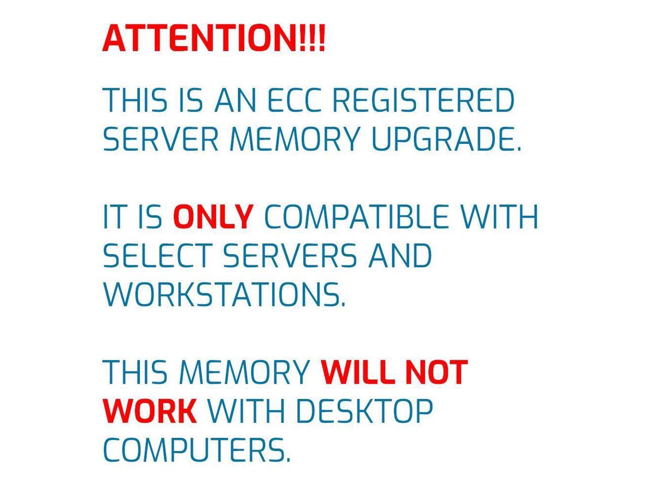 - ECC REGISTERED UPGRADE: This type of memory is used in Workstations and Servers. It will NOT be compatible with standard desktop computers. Also, it cannot be mixed with UNBUFFERED memory.