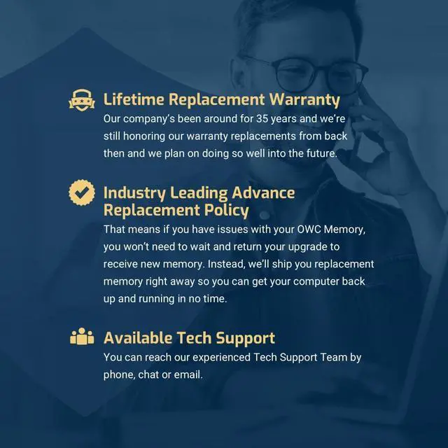 • INDUSTRY LEADING: Consumer-friendly Advanced Replacement Program and Limited Lifetime Warranty, which includes Free Tech Support by Other World Computing.