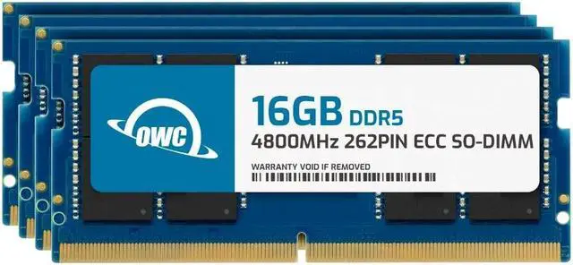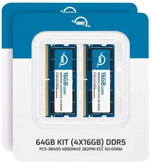 • OWC 64GB UPGRADE: Consists of 4pcs of 16GB DDR5 4800 PC5-38400 CL40 1Rx8 262-pin 1.1V ECC Unbuffered SODIMM Memory RAM Module Upgrade Kit for Select Laptops or All-in-One Systems.