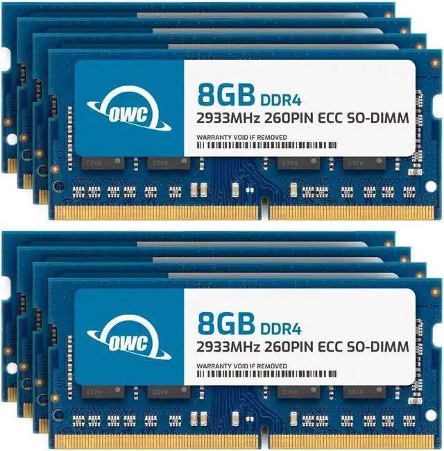 • OWC 64GB UPGRADE: Consists of 8pcs of 8GB DDR4 2933MHz PC4-23400 CL21 1RX8 ECC SO-DIMM 1.2V 260-pin Memory Modules