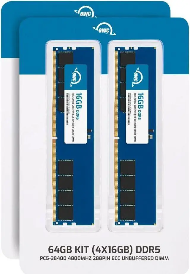 • OWC 64GB UPGRADE: Consists of 4pcs of 16GB DDR5 4800 PC5-38400 CL40 1Rx8 288-pin 1.1V ECC Unbuffered DIMM Memory RAM Module Upgrade Kit for Select Workstations or Servers.
