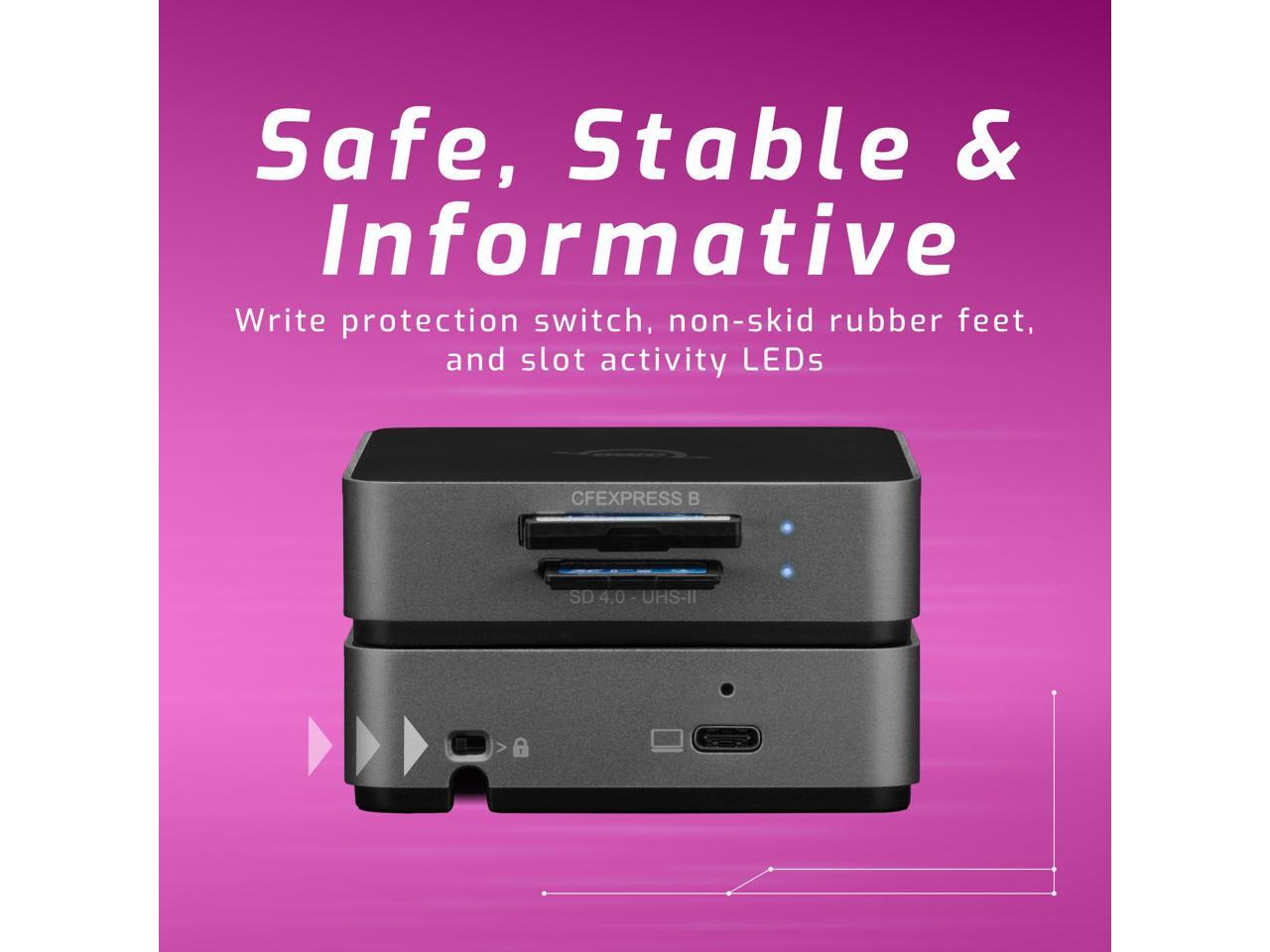 - Compact bus-powered dual slot CFexpress and SD memory card reader that helps creative pros and content creators work smarter and more efficiently