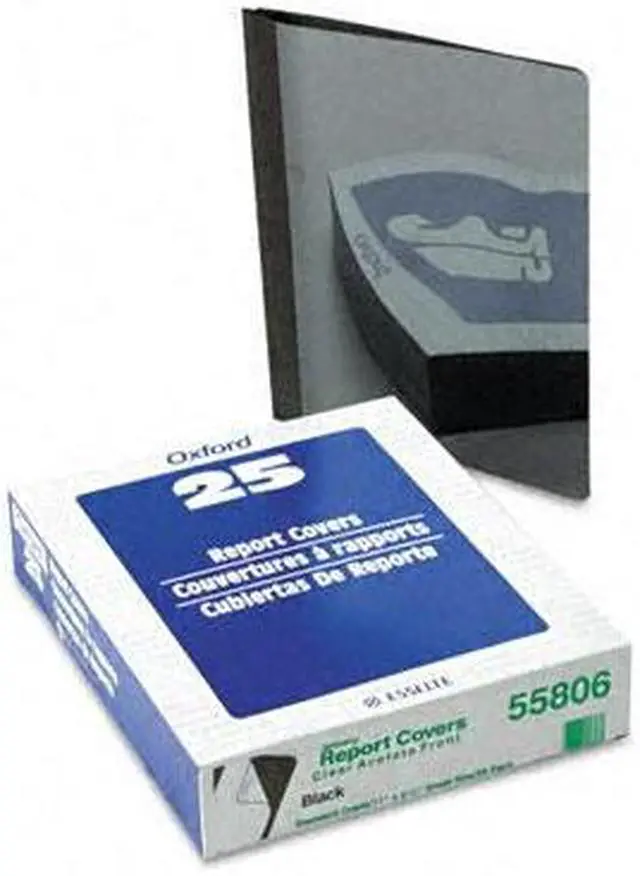 Oxford 55806 Clear Front Report Cover, Tang Clip, Letter, 1/2" Capacity, Black, 25/Box