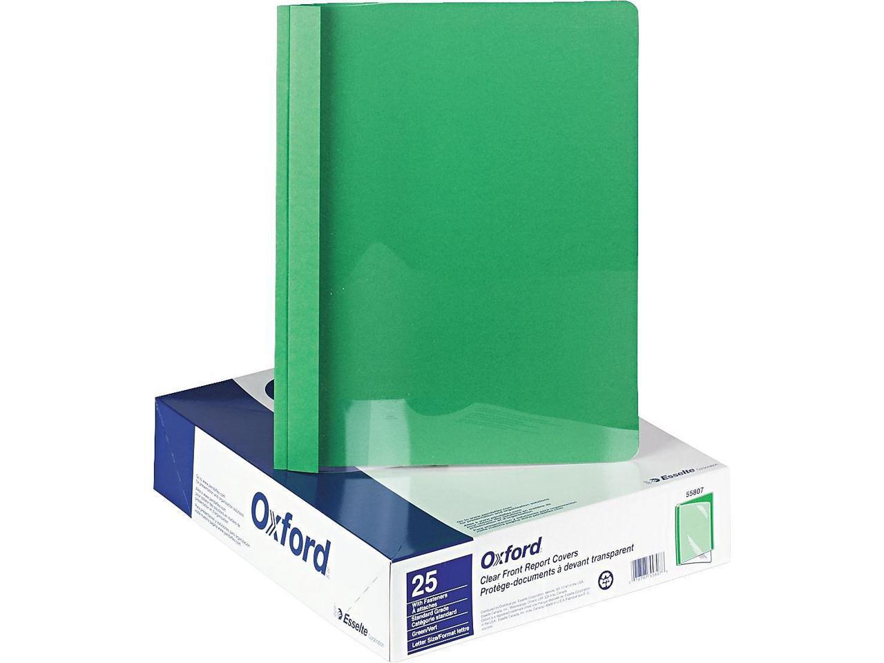 Oxford 55807 Clear Front Report Cover, Tang Clip, Letter, 1/2" Capacity, Green, 25/Box