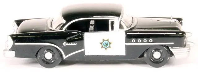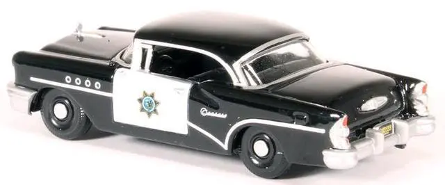 Brand new 1/87 (HO) scale diecast car model of 1955 Buick Century "California Highway Patrol" (CHP) Black die cast model car by Oxford Diecast.