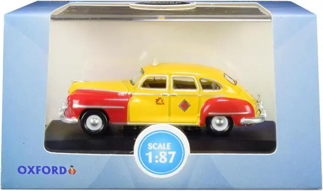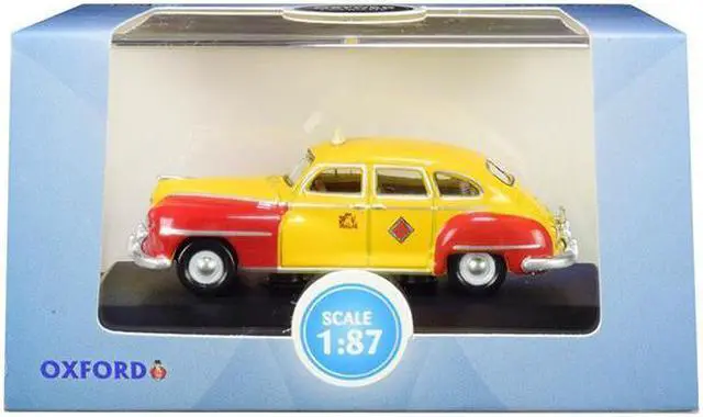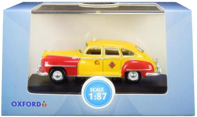Brand new 1/87 (HO) scale diecast car model of 1946-1948 DeSoto Suburban Yellow and Red "San Francisco Taxi" "The Godfather" Movie die cast model car by Oxford Diecast.